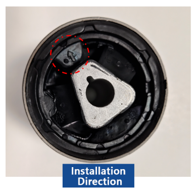 Durante l'installazione, assicurarsi che la sezione solida (non divisa) della boccola sia allineata con la direzione orizzontale di marcia del veicolo. Se la boccola è dotata di freccia di orientamento, questa freccia deve puntare in avanti nella direzione di marcia.