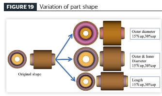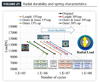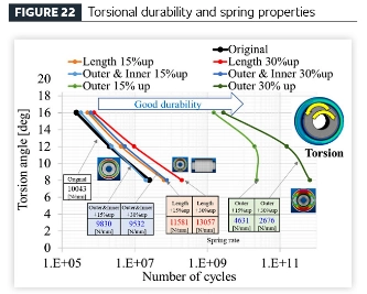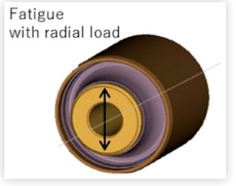 [Stabilimento di un processo efficiente di progettazione di prodotti per veicoli attraverso la tecnologia di analisi della fatica] Applicando la tecnica di analisi della fatica proposta per componenti in gomma con isolamento dalle vibrazioni, è stato condotto uno studio parametrico su componenti realizzati con lo stesso materiale per indagare la relazione tra variazione geometrica (volume della gomma) e prestazioni di durabilità. La geometria del componente è stata derivata dal progetto della parte originale, con variazioni modellate tra cui: