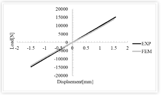 La curva di rigidezza della boccola (curva forza-spostamento) viene confrontata con i risultati sperimentali, dimostrando ulteriormente la validità del modello FEM stabilito. Come si può vedere dalla figura: l'analisi utilizzando i parametri iperelastici identificati dai provini dei materiali dimostra una buona coerenza tra i risultati sperimentali e quelli analitici sul diagramma carico-spostamento.