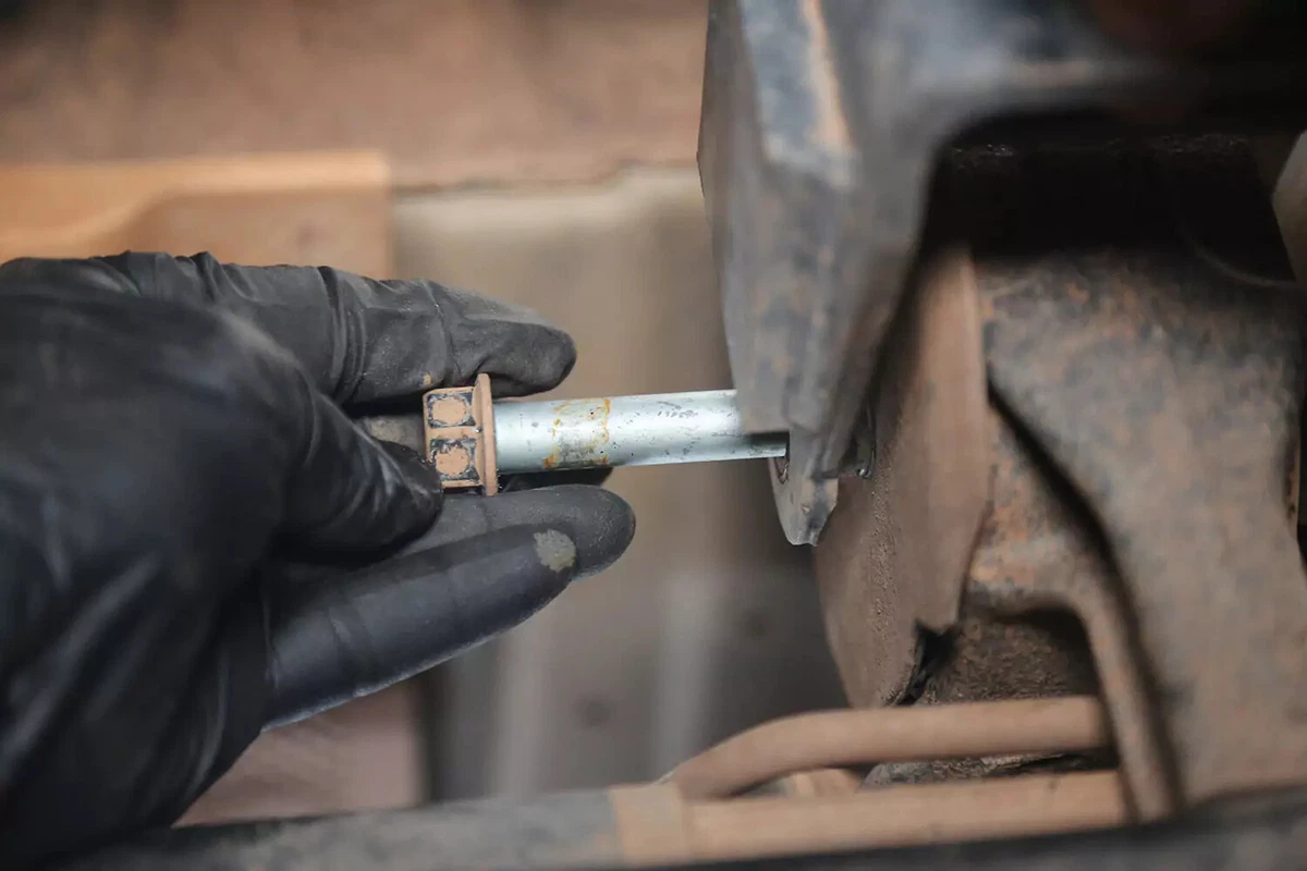 6 Rimuovere il bullone trasversale della trasmissione